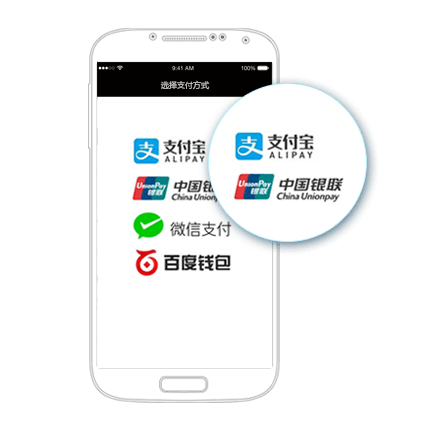 畅玩支付平台,为iOS/Android原生/H5 App提供支付解决方案:支持微信支付、支付宝支付、银联手机支付、百度钱包等。